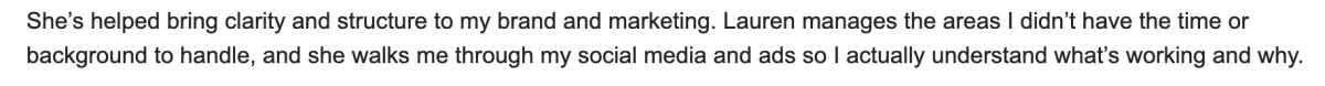 You get a turnkey playbook that clarifies your brand, aligns your messaging, and maps out exactly what to post (and why) to increase your revenue and drive ROI.