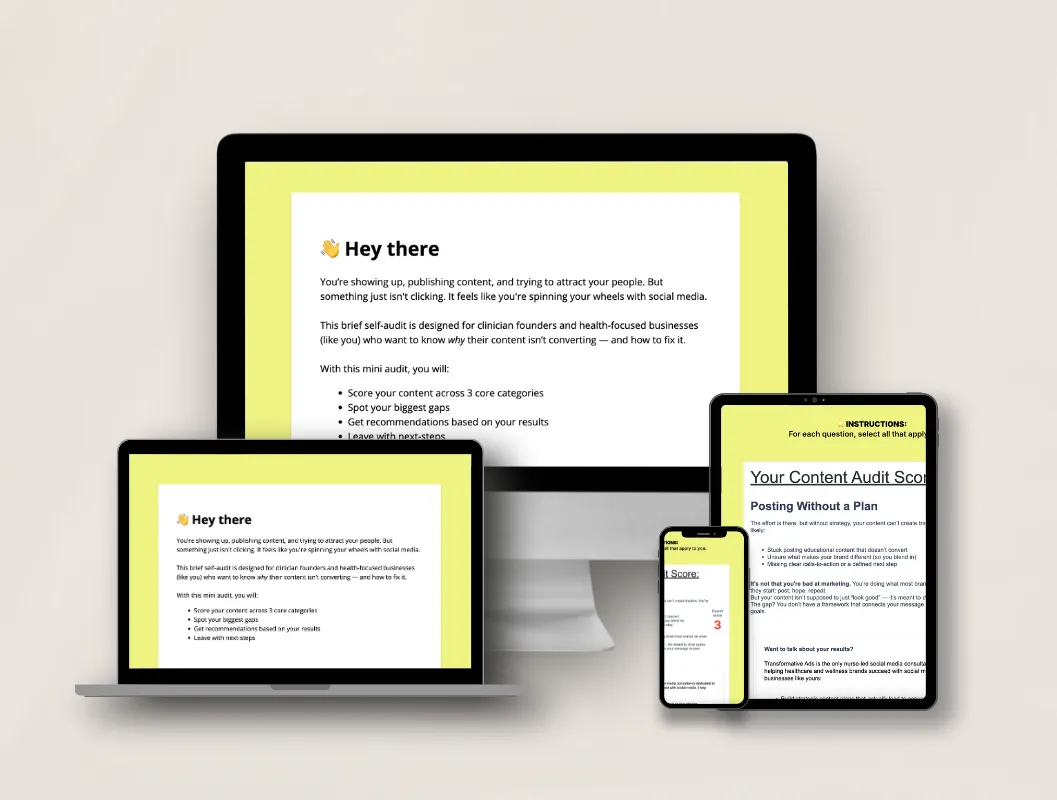 No more guessing, no more “maybe it’s the algorithm.” This quick audit shows you exactly where your messaging, positioning, or content structure is breaking down — so you finally understand why your posts aren’t driving revenue.